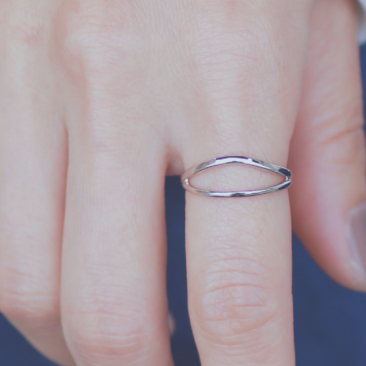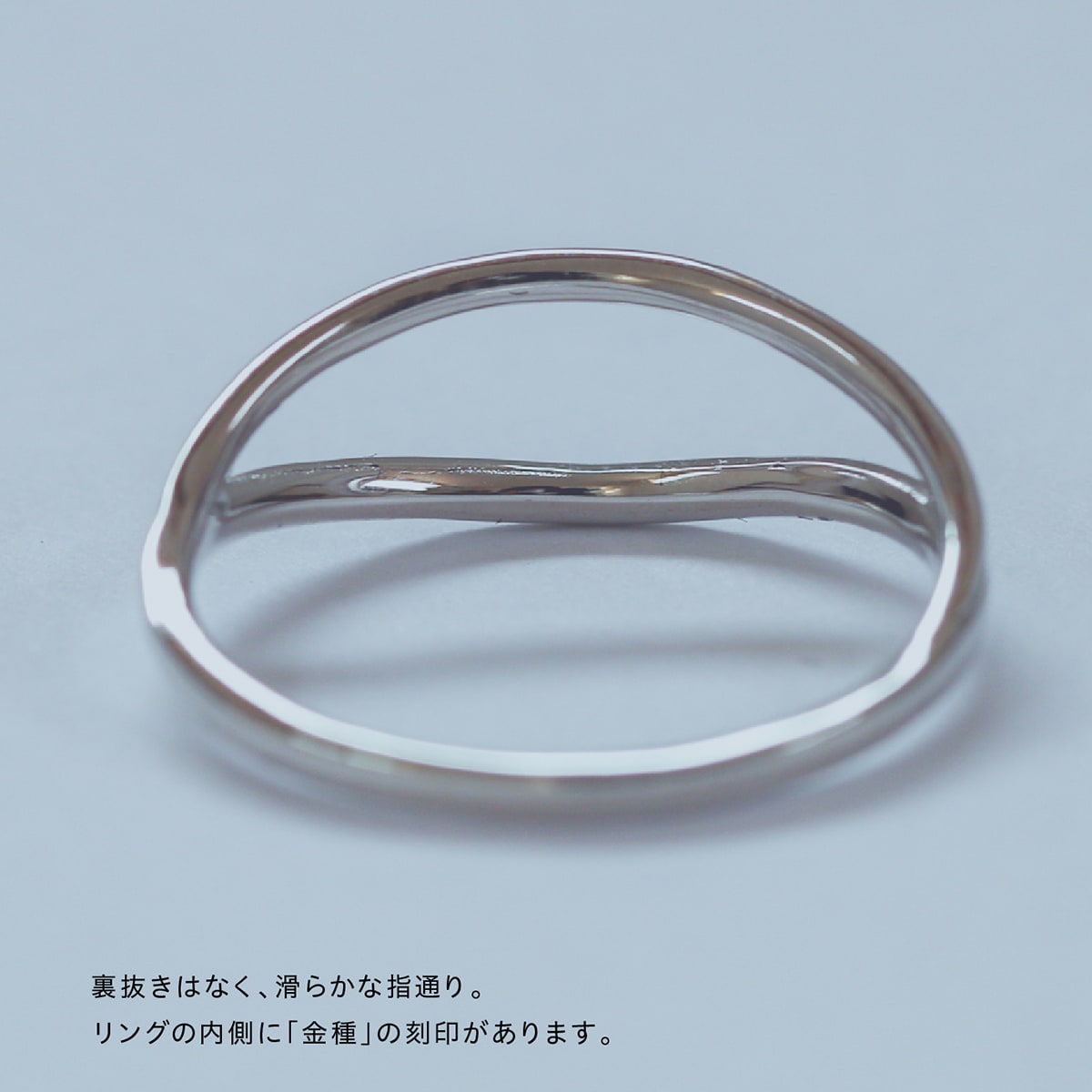 やわらかなラインがクロスしたレイヤードリング。着ける角度によってデザインに変化をつけられるので、見るたびに新鮮な印象を与えてくれます。細身のリングとの重ね付けはもちろん、ボリュームリングともコーディネートもおすすめ。使い方次第でカジュアルにもモードにもなる大人のための贅沢リング。品質を重視した繊細な日本の匠の技で創られた自信作(日本製)です。