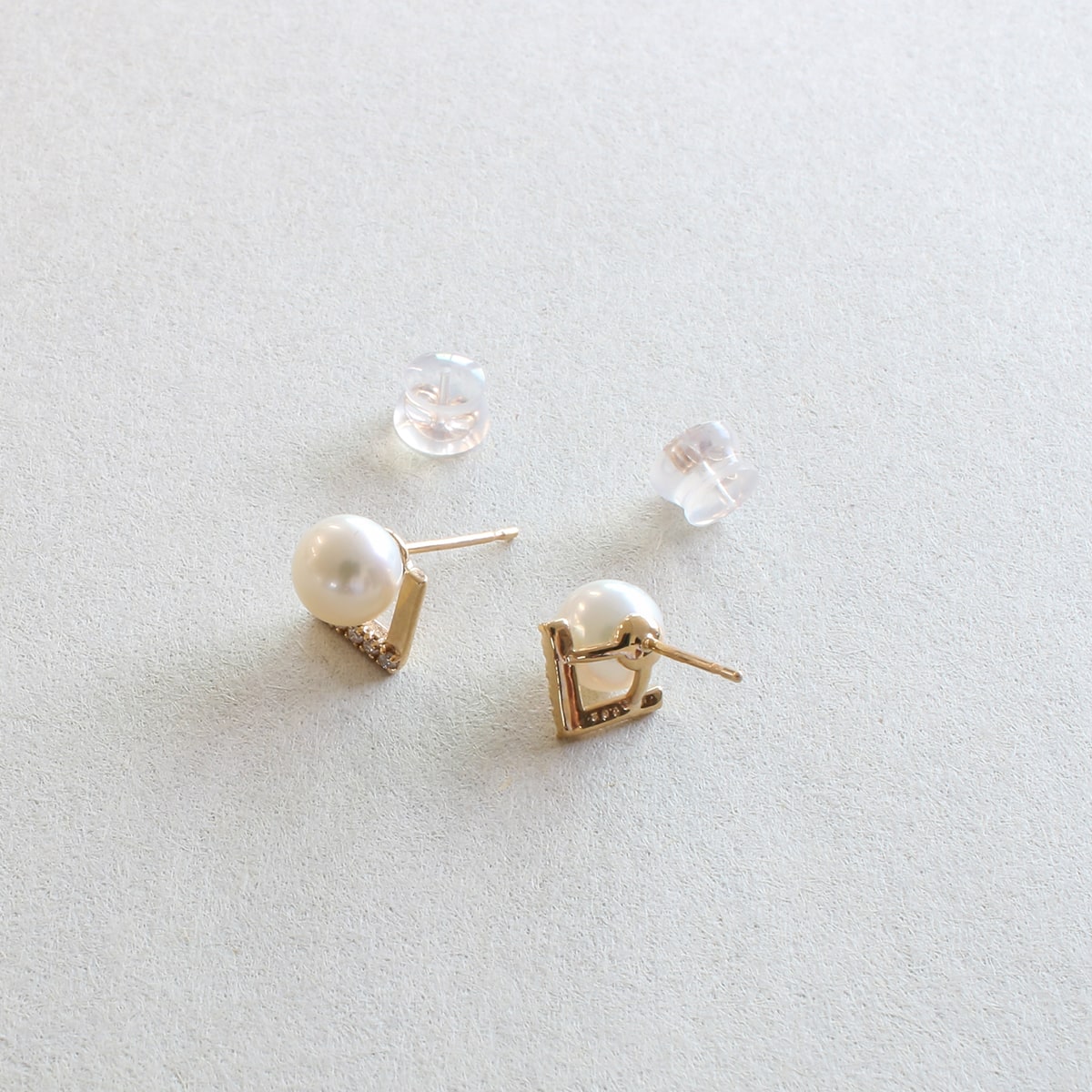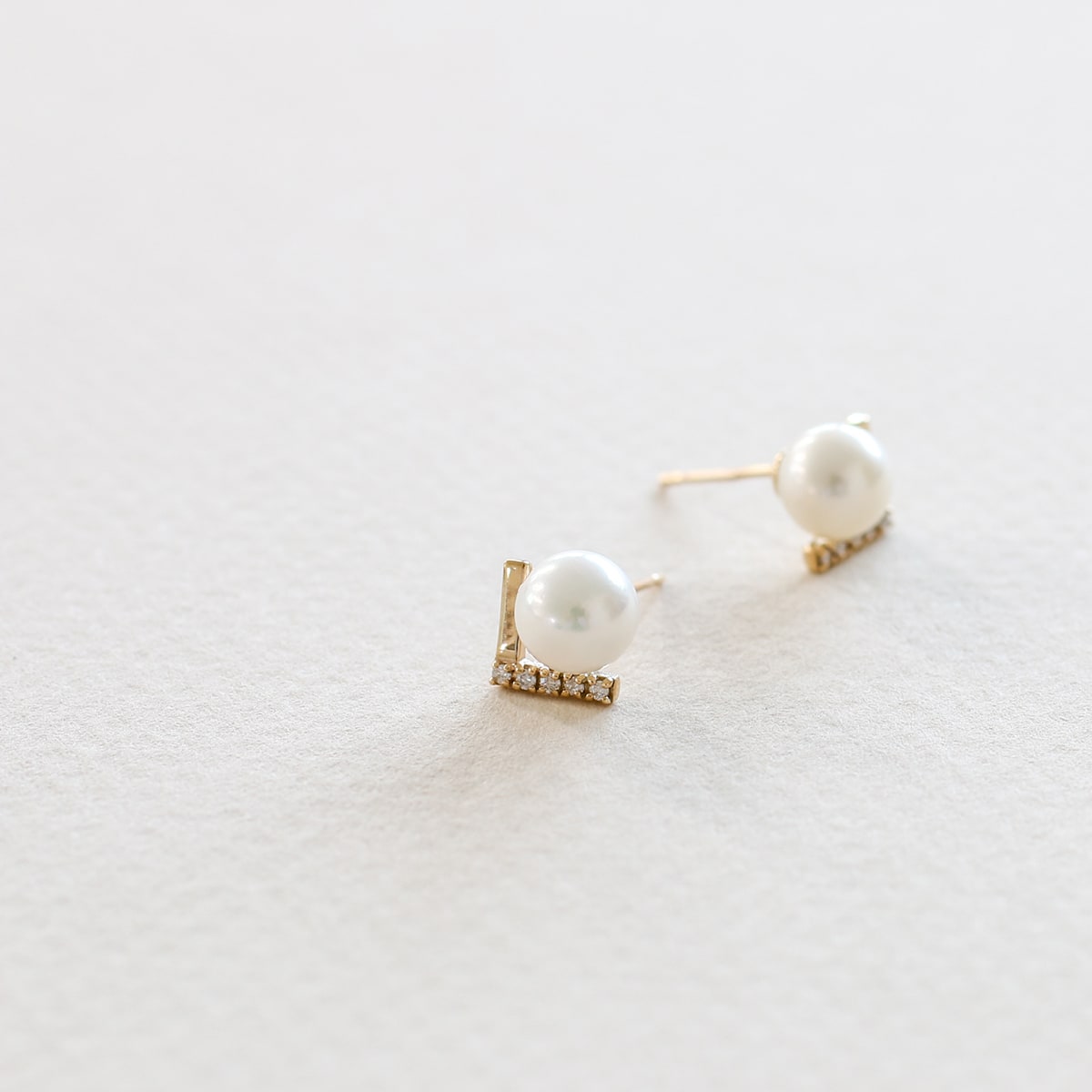 天然ダイヤモンド&淡水パールピアス | cp2654