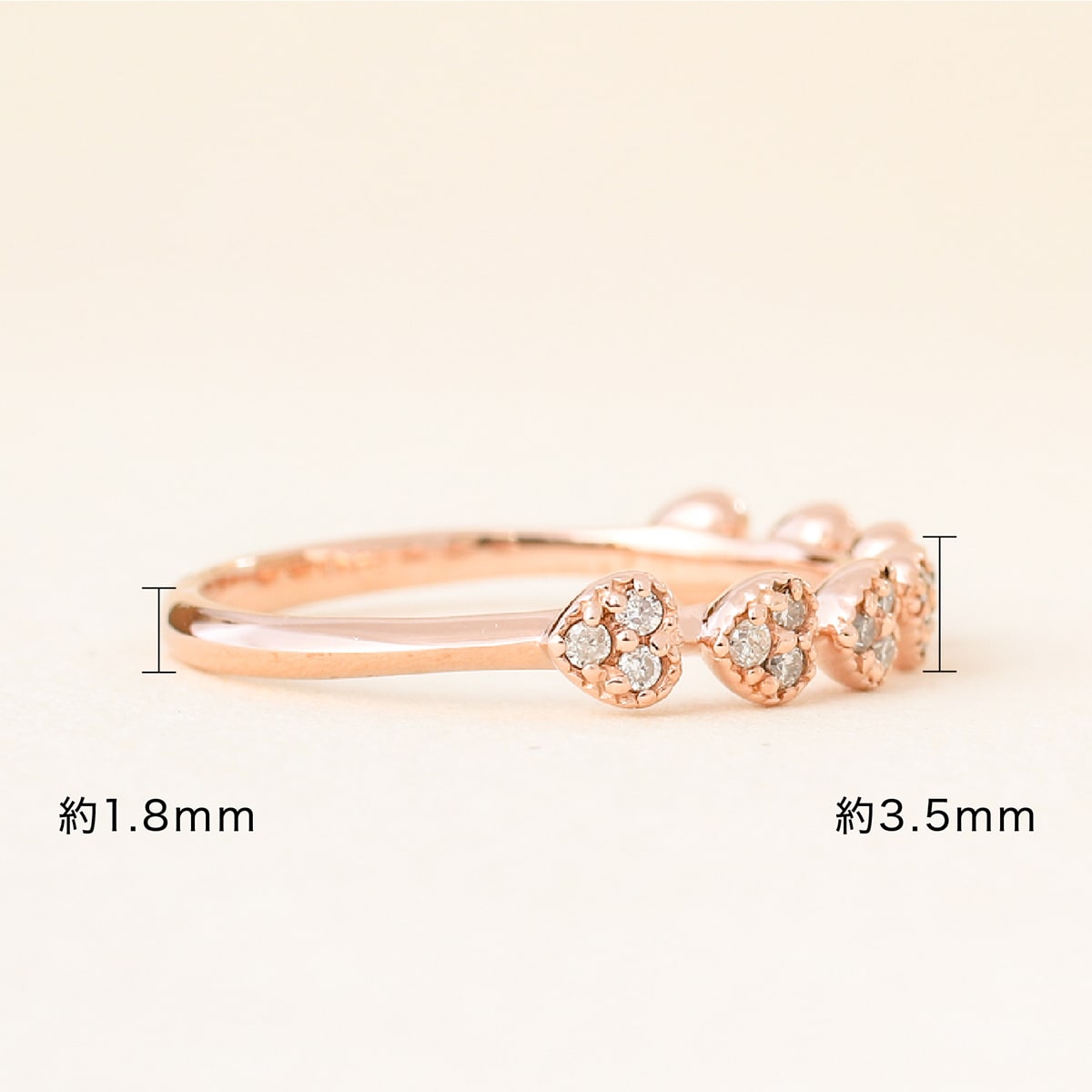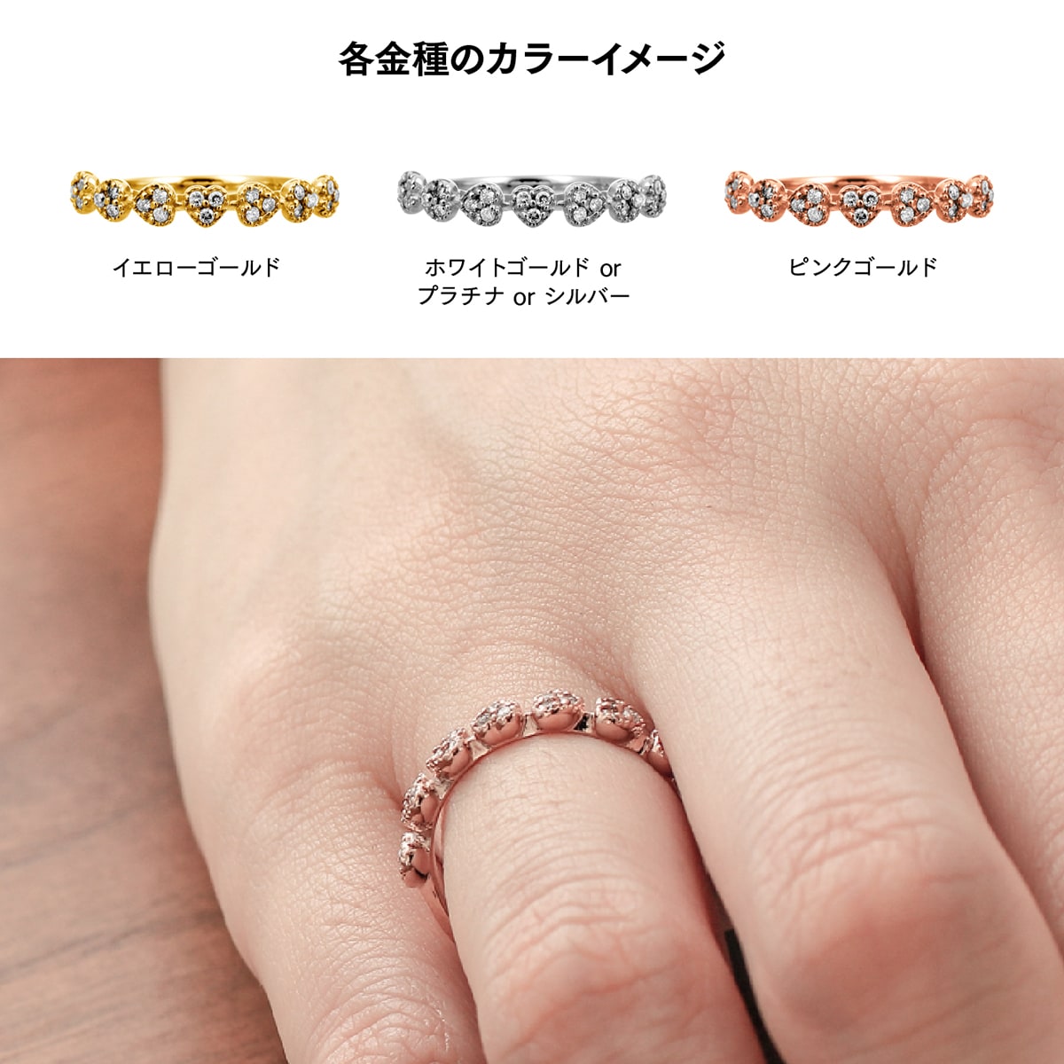 大人のかわいらしさを演出してくれるハートリング。繊細なミル打ちが指先を華やかに彩ります。これ一本で様になる存在感抜群の主役級リングです。普段使いからパーティーなど幅広くお使いいただけます。シンプルながら程よいボリュームで存在感のある指輪です。その時の洋服によって可愛らしさやかっこよさに姿を変えるシンプルデザインリング。品質を重視した繊細な日本の匠の技で創られた自信作(日本製)です。大人のための贅沢リング。ダイヤモンドの輝きにこだわった特別な指輪です。4月の誕生石ダイヤモンド。
