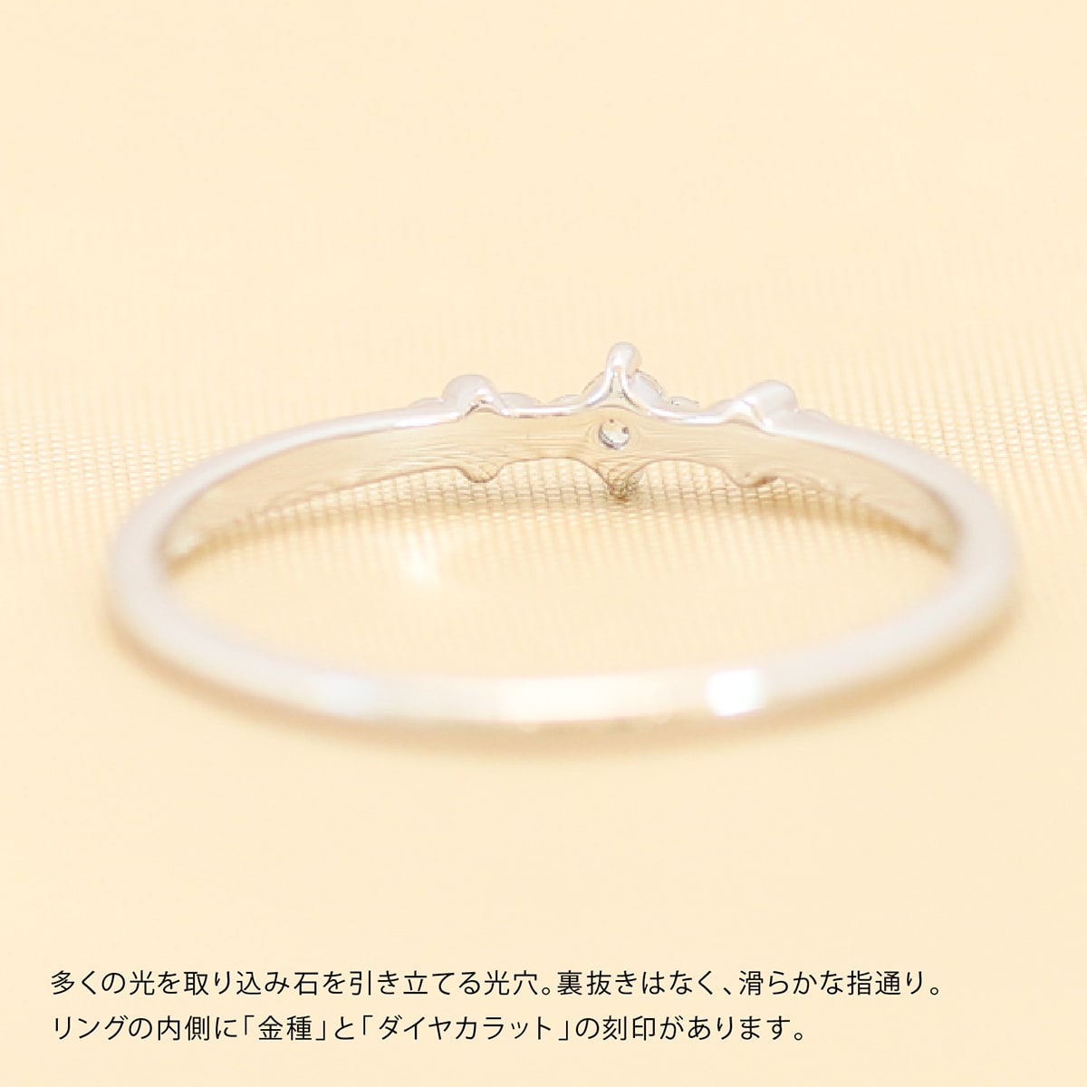 商品に金属名を打刻。またダイヤモンド付き商品にはカラット数も打刻してあります。