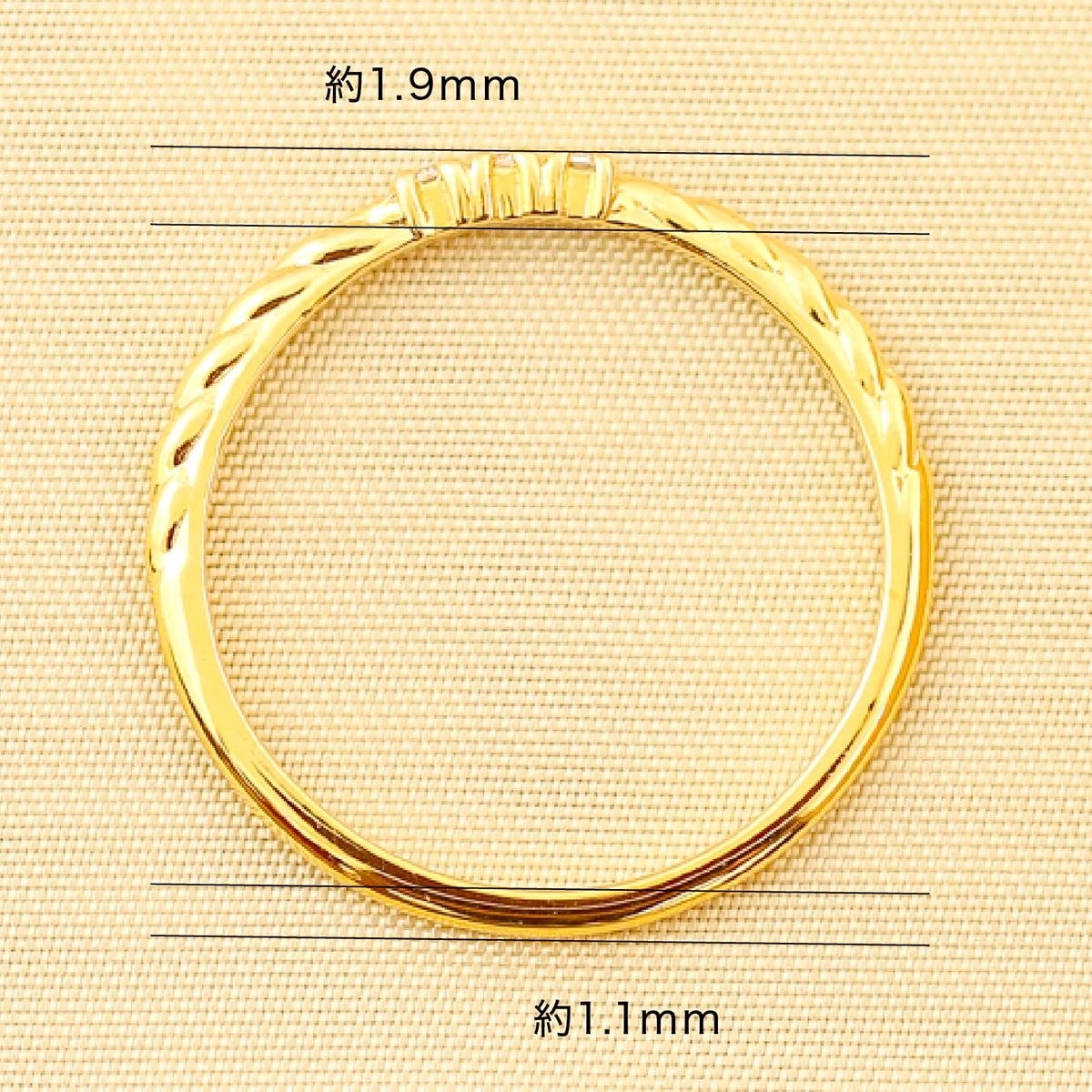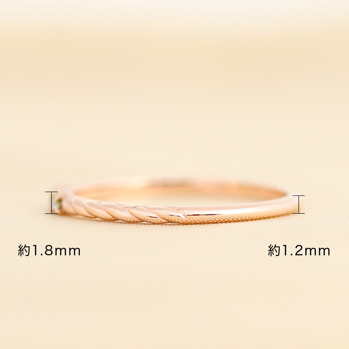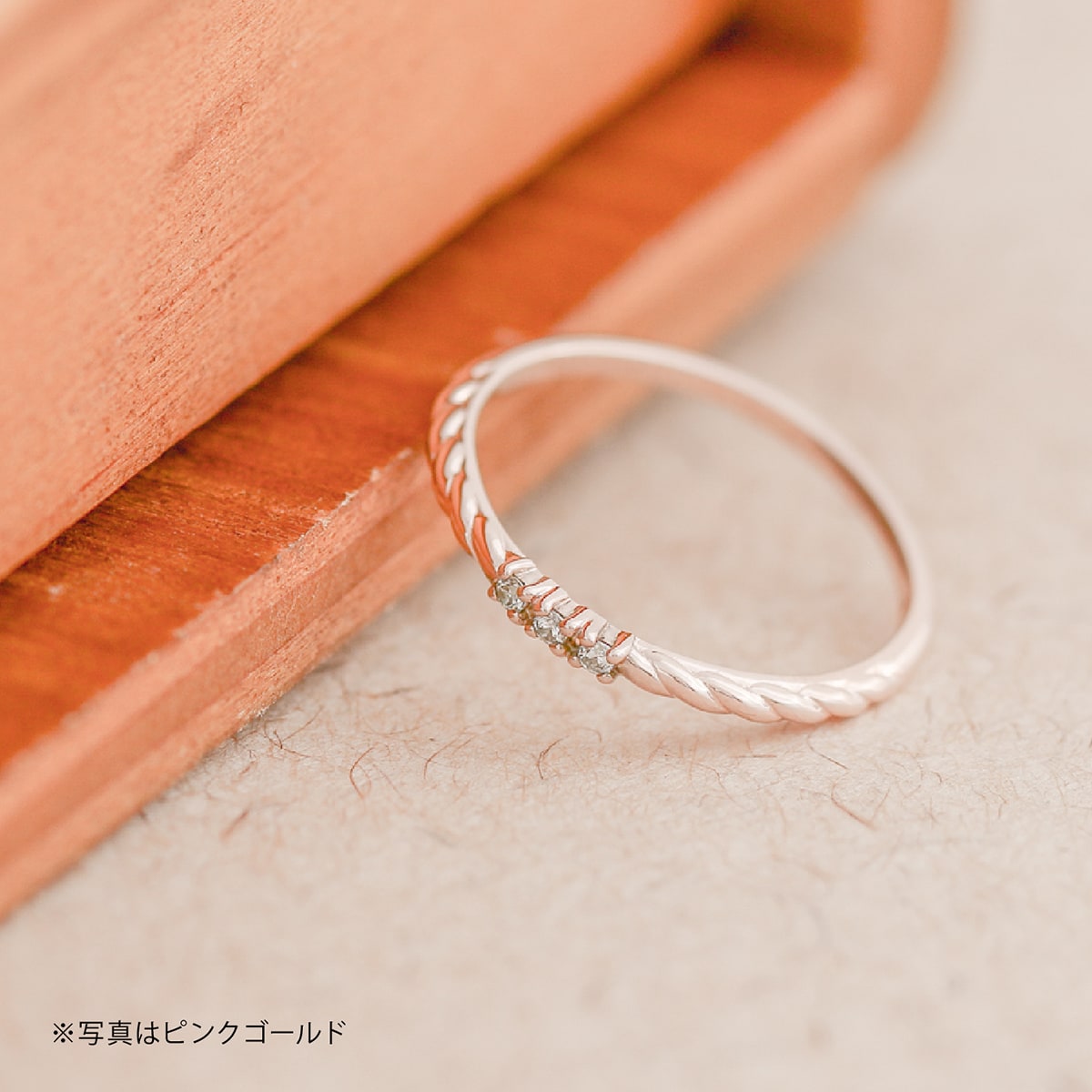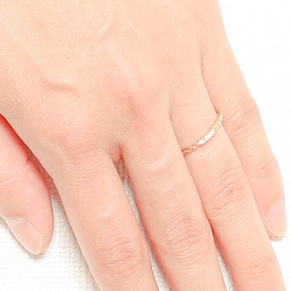 着け心地が良い確りとした作りの縄編み模様がかわいらしい存在感のあるデザイン。洗練されたデザインで大人のお洒落を演出してくれます。オンにもオフにも使いやすいので迷ったときはこれをチョイスして。程よいボリュームで存在感のある指輪です。その時の洋服によって可愛らしさやかっこよさに姿を変えるシンプルデザインリング。一本使いでも十分楽しめますが、今お持ちの指輪とのセットリング用としてもおすすめ。ジュエリーをもっと身近に…着けるシチュエーションを選ばないので、より多く長くお使いいただけるデザインです。品質を重視した繊細な日本の匠の技で創られた自信作(日本製)です。大人のための贅沢リング。ダイヤモンドの輝きにこだわった特別な指輪です。4月の誕生石ダイヤモンド。