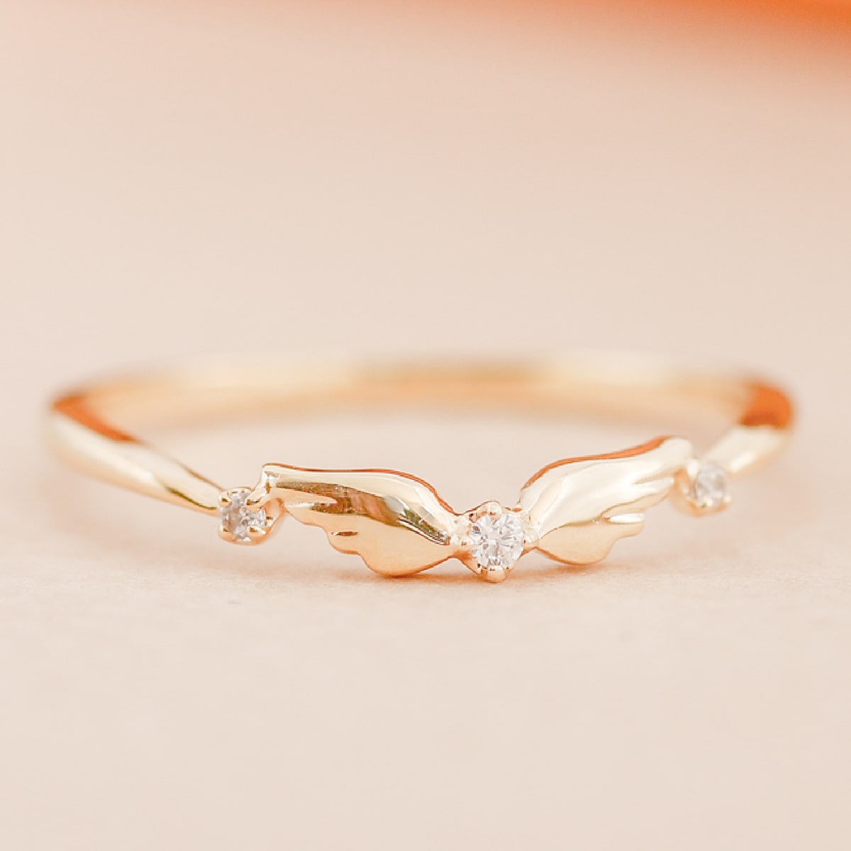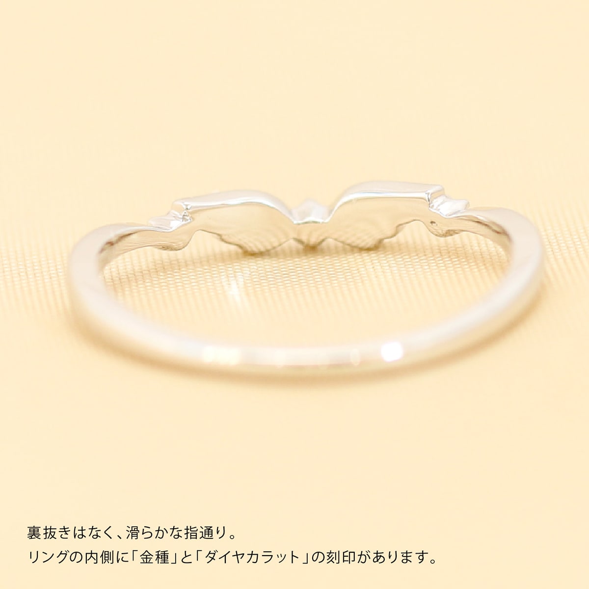 オールマイティで使用機会が多くなると思われるリング。着け心地が良い確りとした作りの存在感のあるとてもかわいらしい天使の羽モチーフのデザイン。洗練されたデザインで大人のお洒落を演出してくれます。オンにもオフにも使いやすいので迷ったときはこれをチョイスして。程よいボリュームで存在感のある指輪です。その時の洋服によって可愛らしさやかっこよさに姿を変えるシンプルデザインリング。全体に厚みがあり確りとした作りの指輪になっていますので長くご愛用して頂けます。品質を重視した繊細な日本の匠の技で創られた自信作(日本製)です。大人のための贅沢リング。ダイヤモンドの輝きにこだわった特別な指輪です。4月の誕生石ダイヤモンド。
