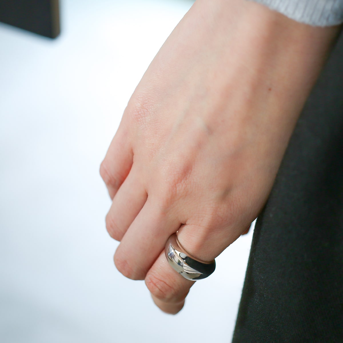 着け心地が良い確りとした作りの存在感のあるデザインで、これ一本で様になる存在感抜群の主役級リングです。ボリュームリングとのコーディネートはもちろん、細身のリングとの相性も抜群。ジェンダーレスでお使いいただけますので、ペアリングとしてもおすすめです。使い方次第でカジュアルにもモードにもなる大人のための贅沢リング。品質を重視した繊細な日本の匠の技で創られた自信作(日本製)です。