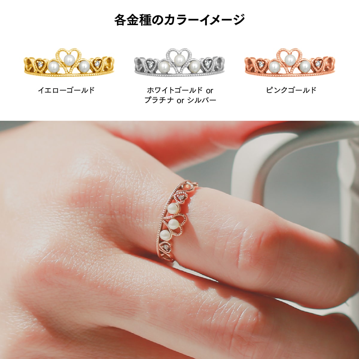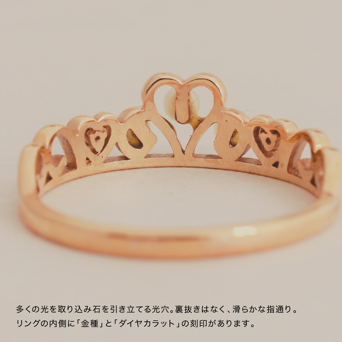 商品に金属名を打刻。またダイヤモンド付き商品にはカラット数も打刻してあります。