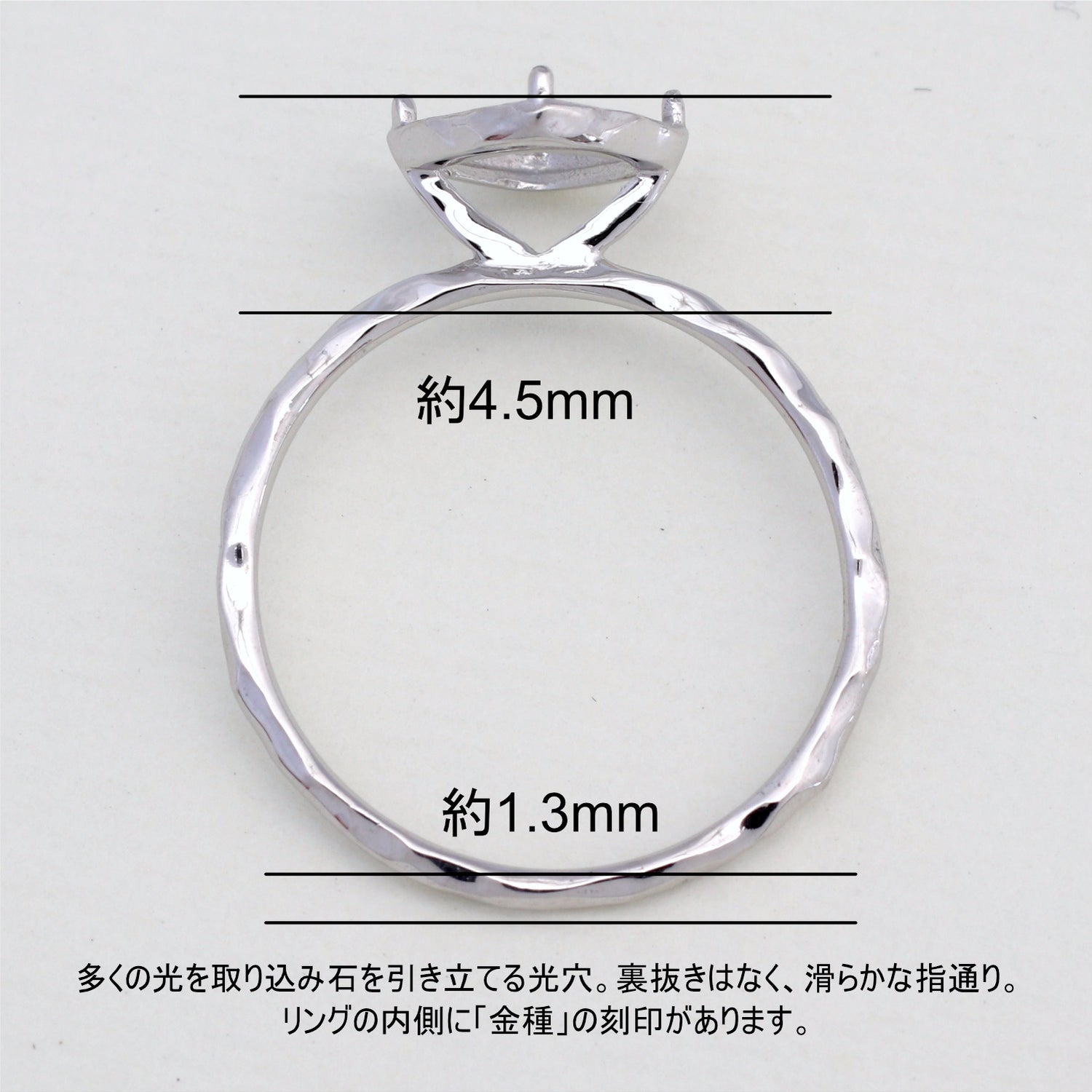 商品に金属名を打刻。またダイヤモンド付き商品にはカラット数も打刻してあります。