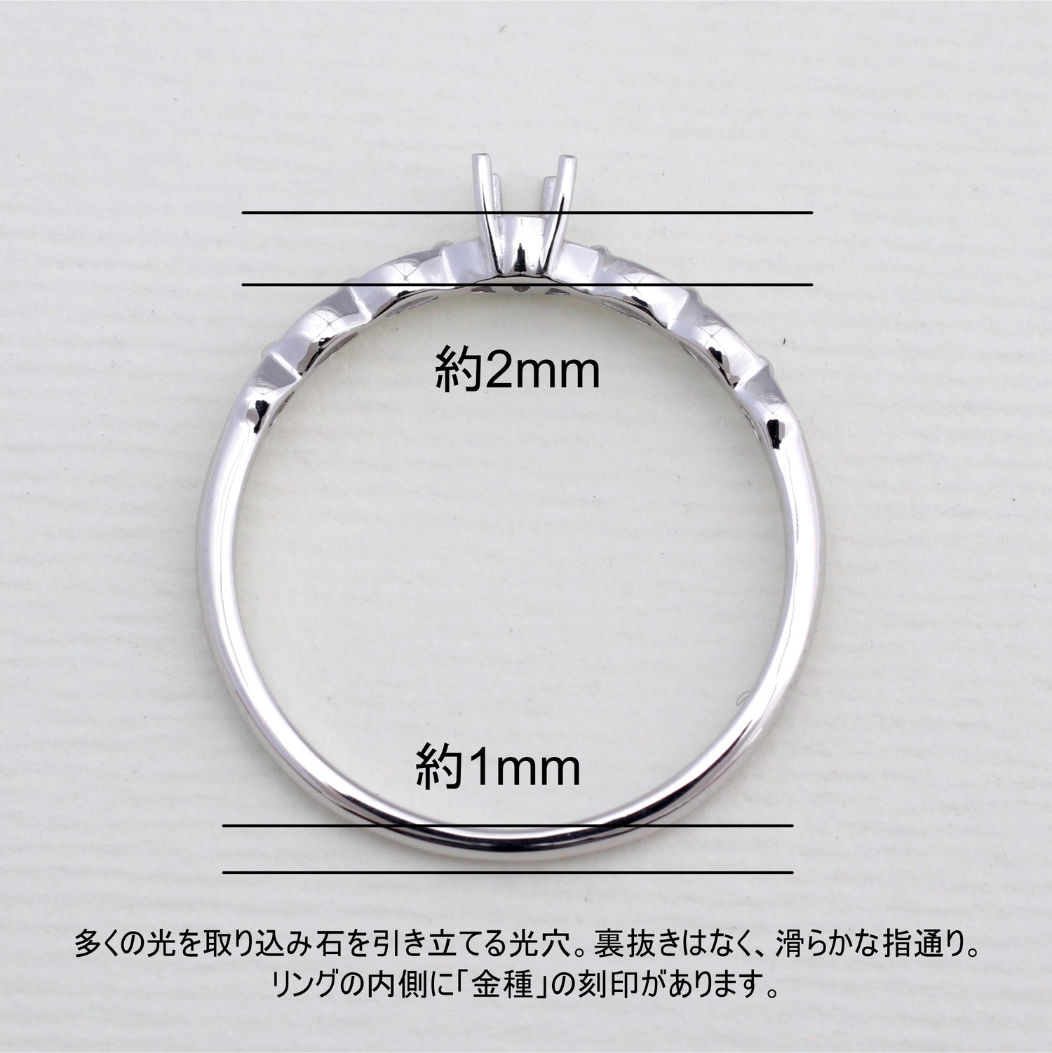 商品に金属名を打刻。またダイヤモンド付き商品にはカラット数も打刻してあります。