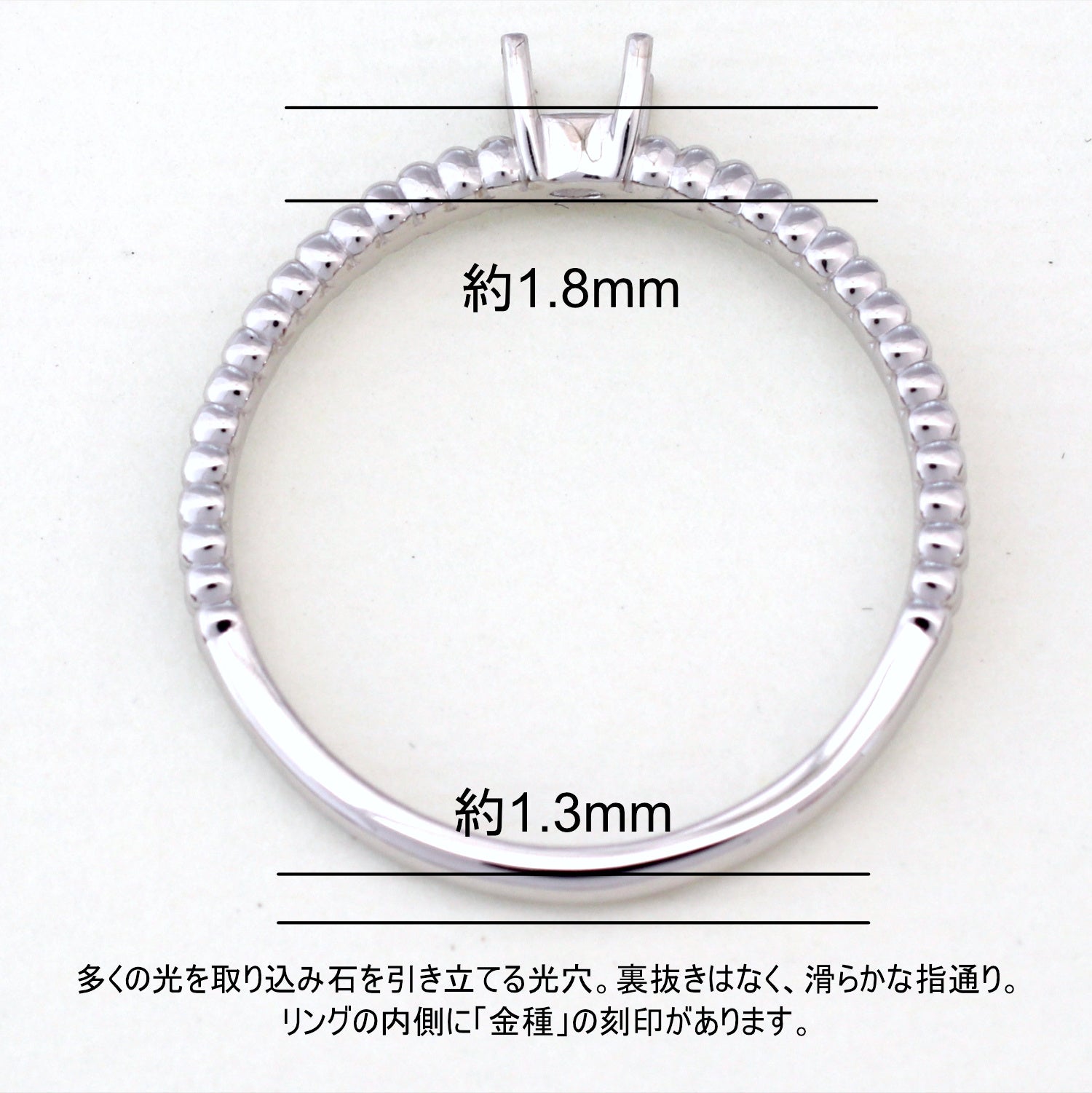 商品に金属名を打刻。またダイヤモンド付き商品にはカラット数も打刻してあります。