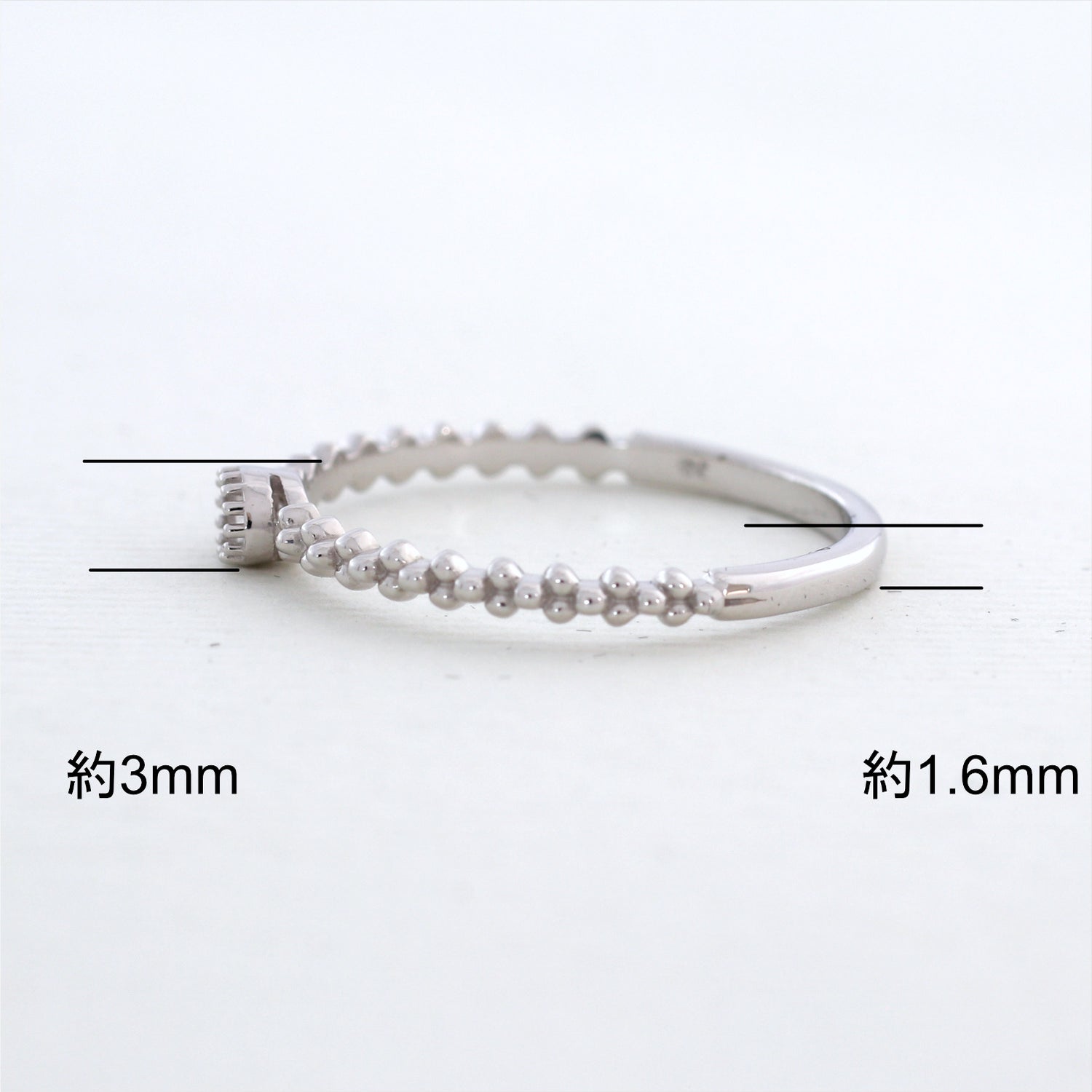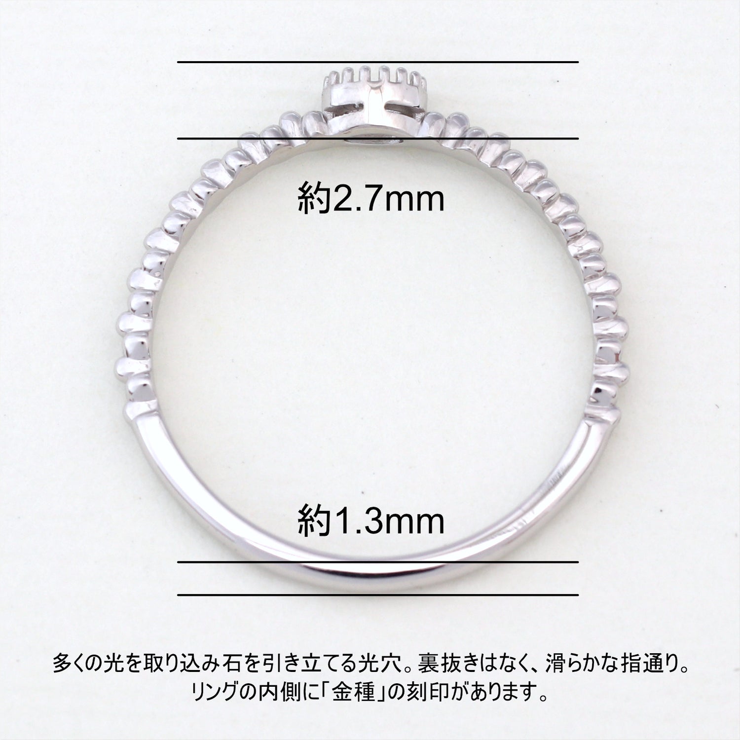 商品に金属名を打刻。またダイヤモンド付き商品にはカラット数も打刻してあります。