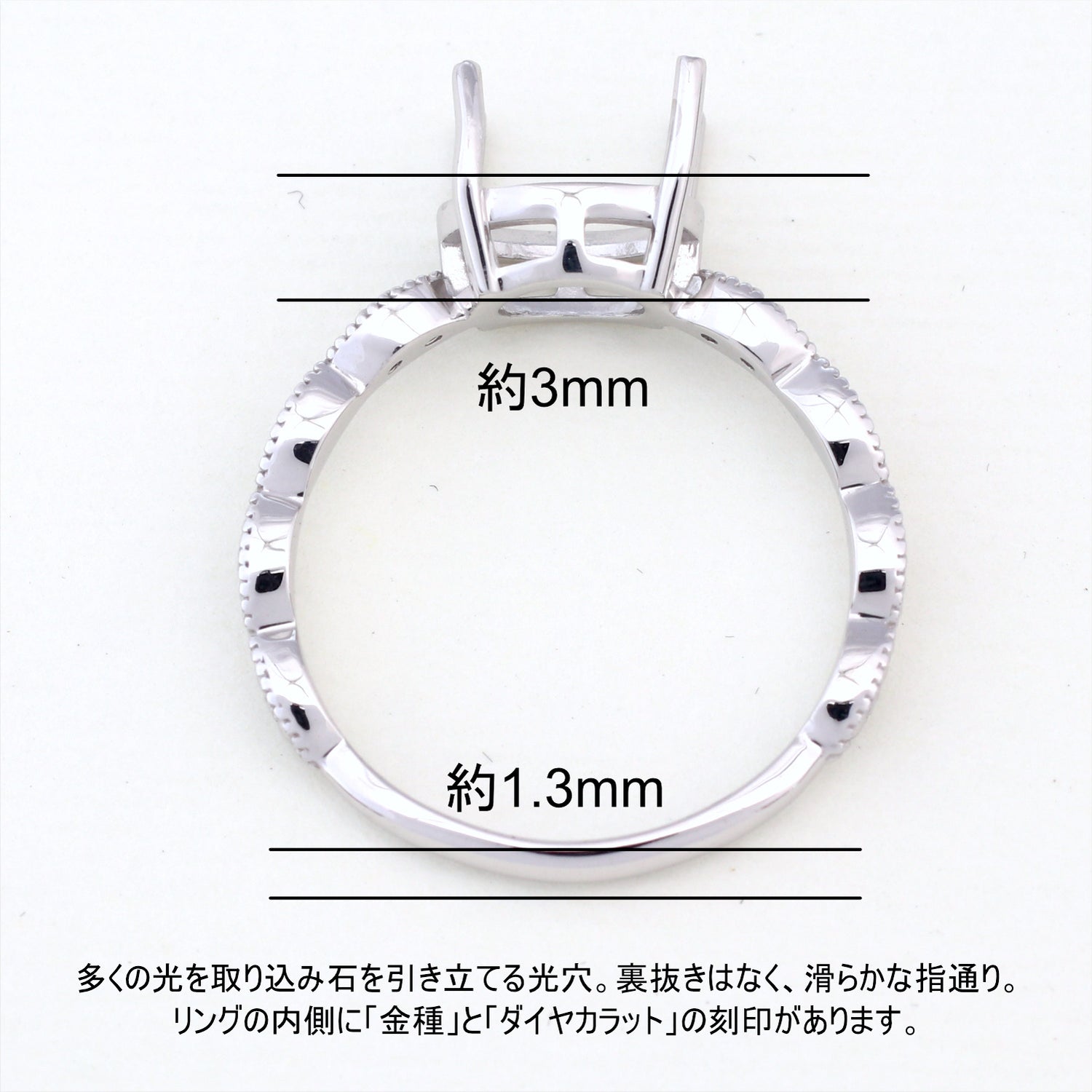 商品に金属名を打刻。またダイヤモンド付き商品にはカラット数も打刻してあります。