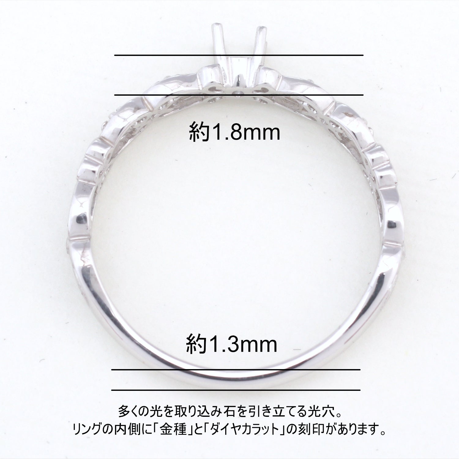 商品に金属名を打刻。またダイヤモンド付き商品にはカラット数も打刻してあります。