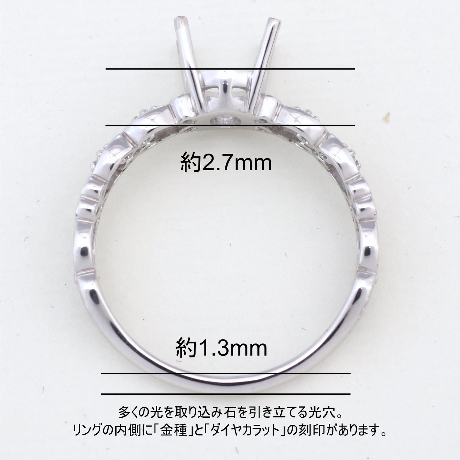 商品に金属名を打刻。またダイヤモンド付き商品にはカラット数も打刻してあります。
