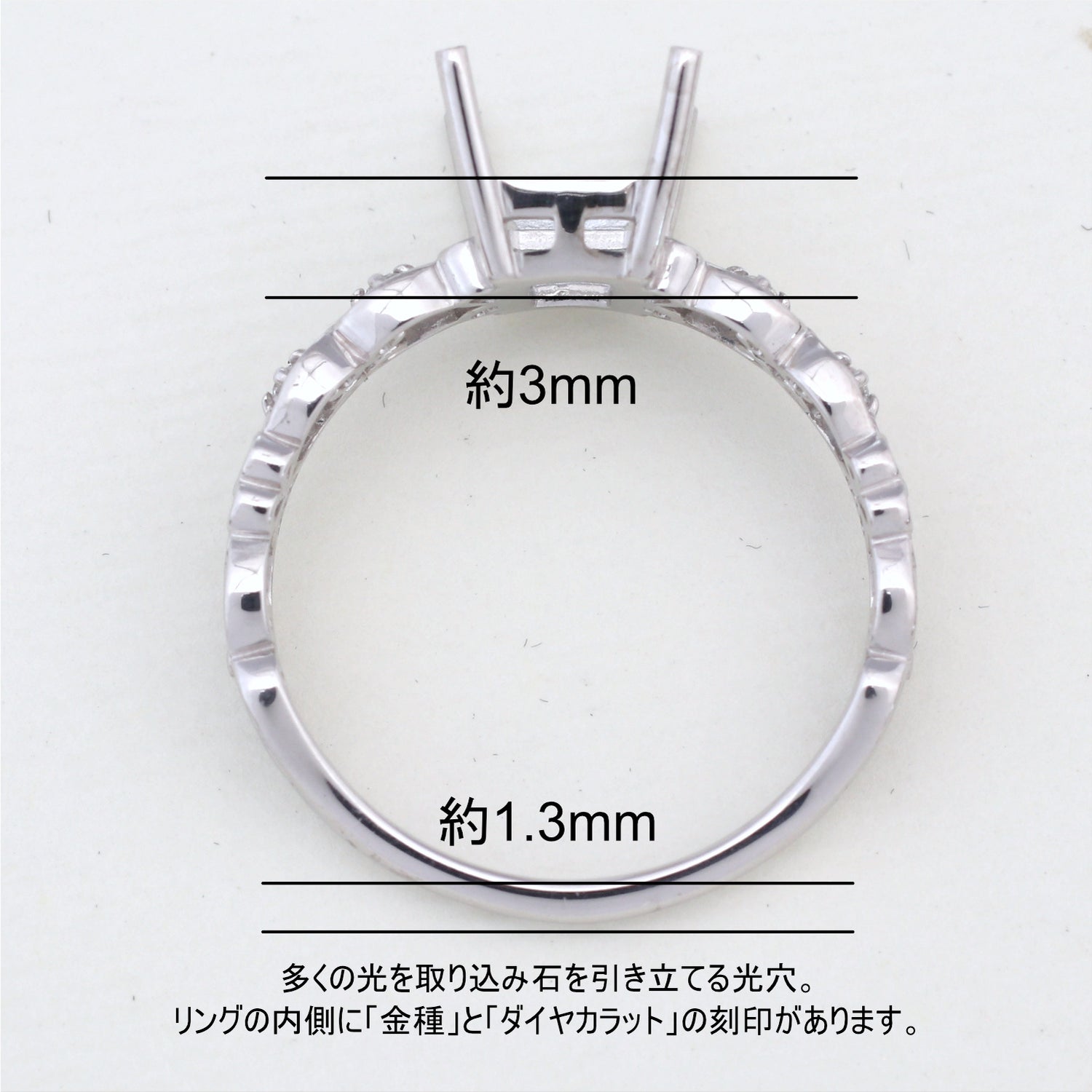 商品に金属名を打刻。またダイヤモンド付き商品にはカラット数も打刻してあります。