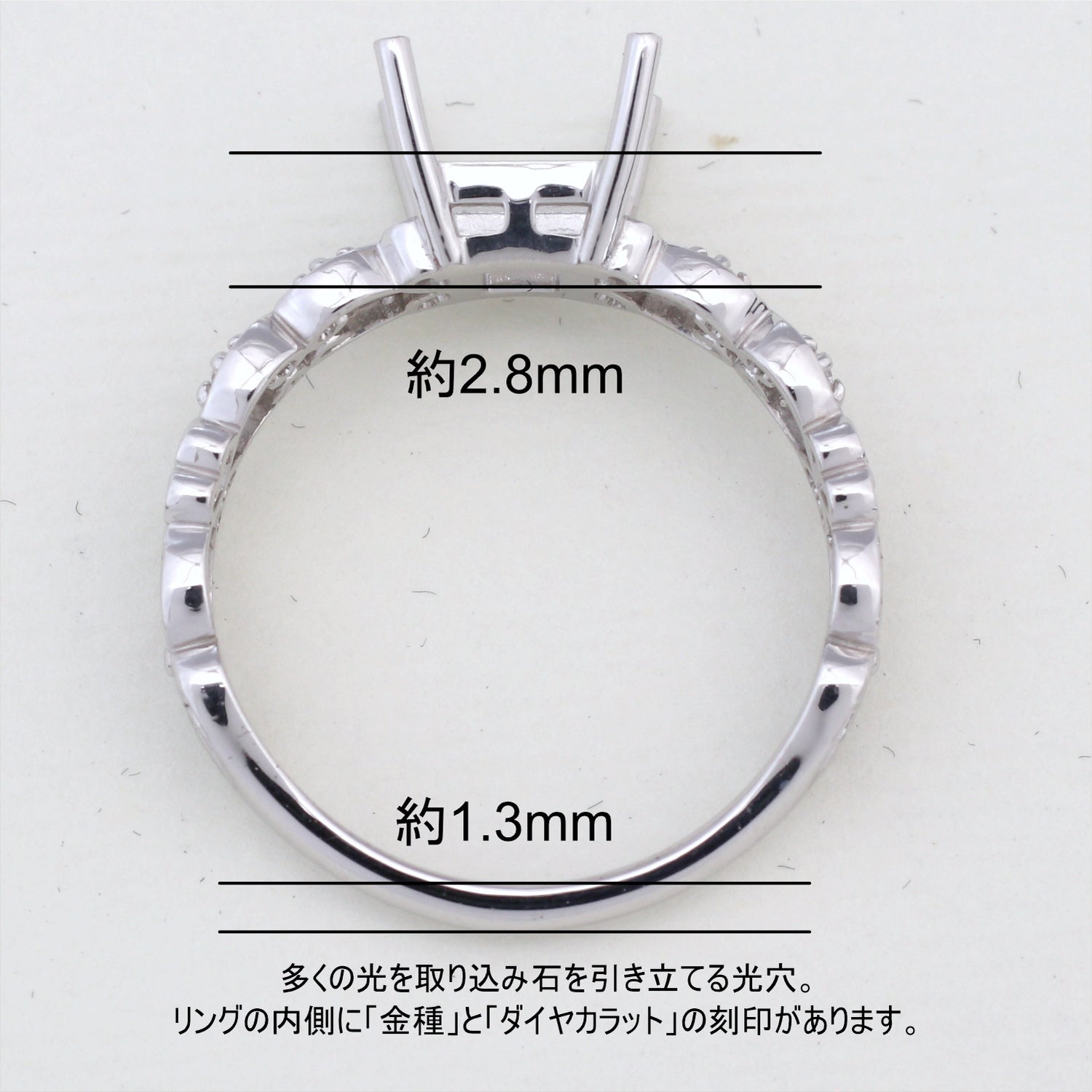 商品に金属名を打刻。またダイヤモンド付き商品にはカラット数も打刻してあります。