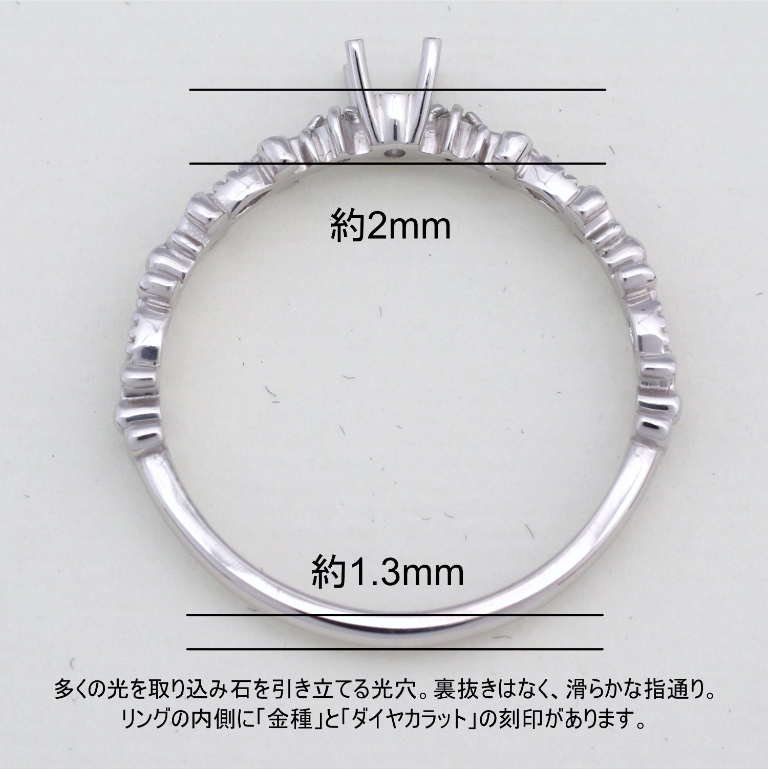 商品に金属名を打刻。またダイヤモンド付き商品にはカラット数も打刻してあります。