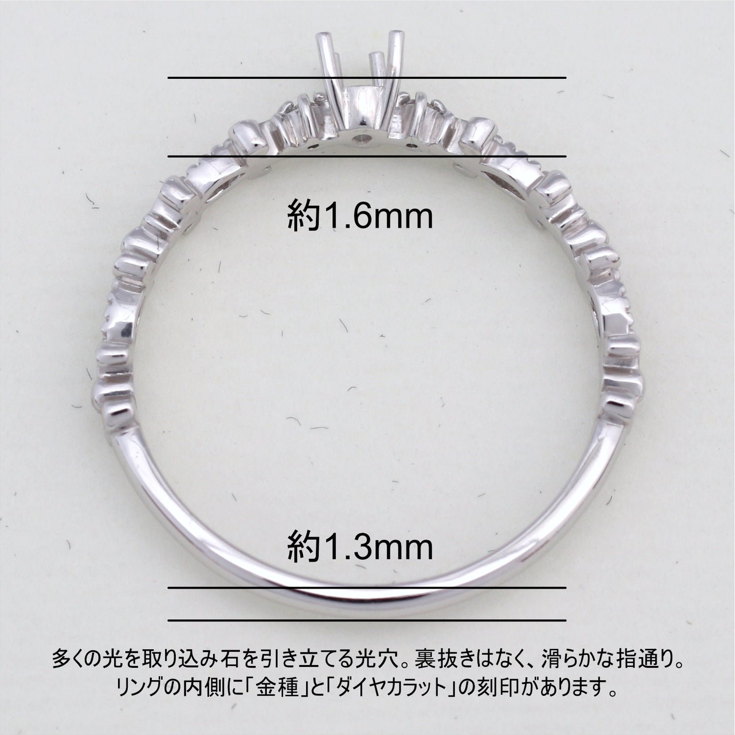 商品に金属名を打刻。またダイヤモンド付き商品にはカラット数も打刻してあります。
