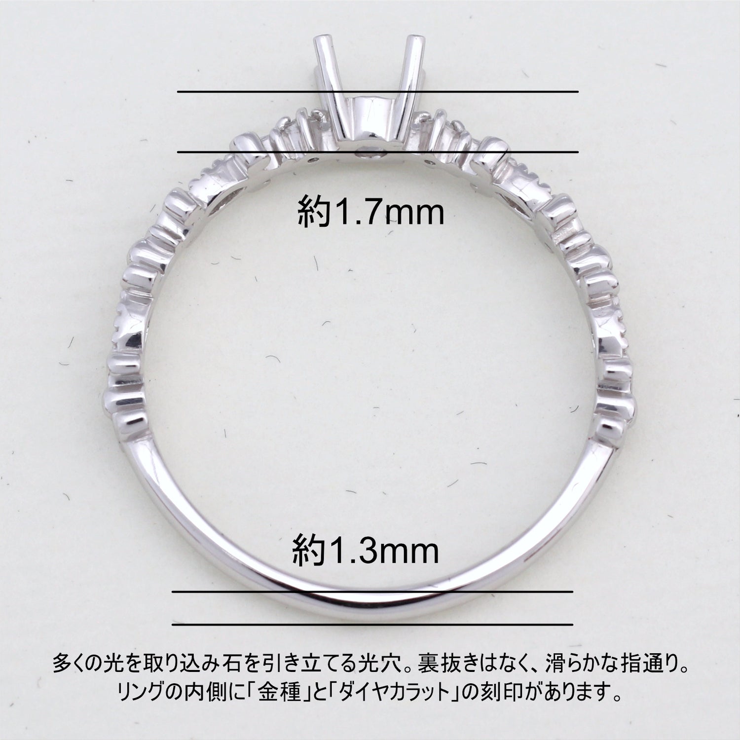 商品に金属名を打刻。またダイヤモンド付き商品にはカラット数も打刻してあります。