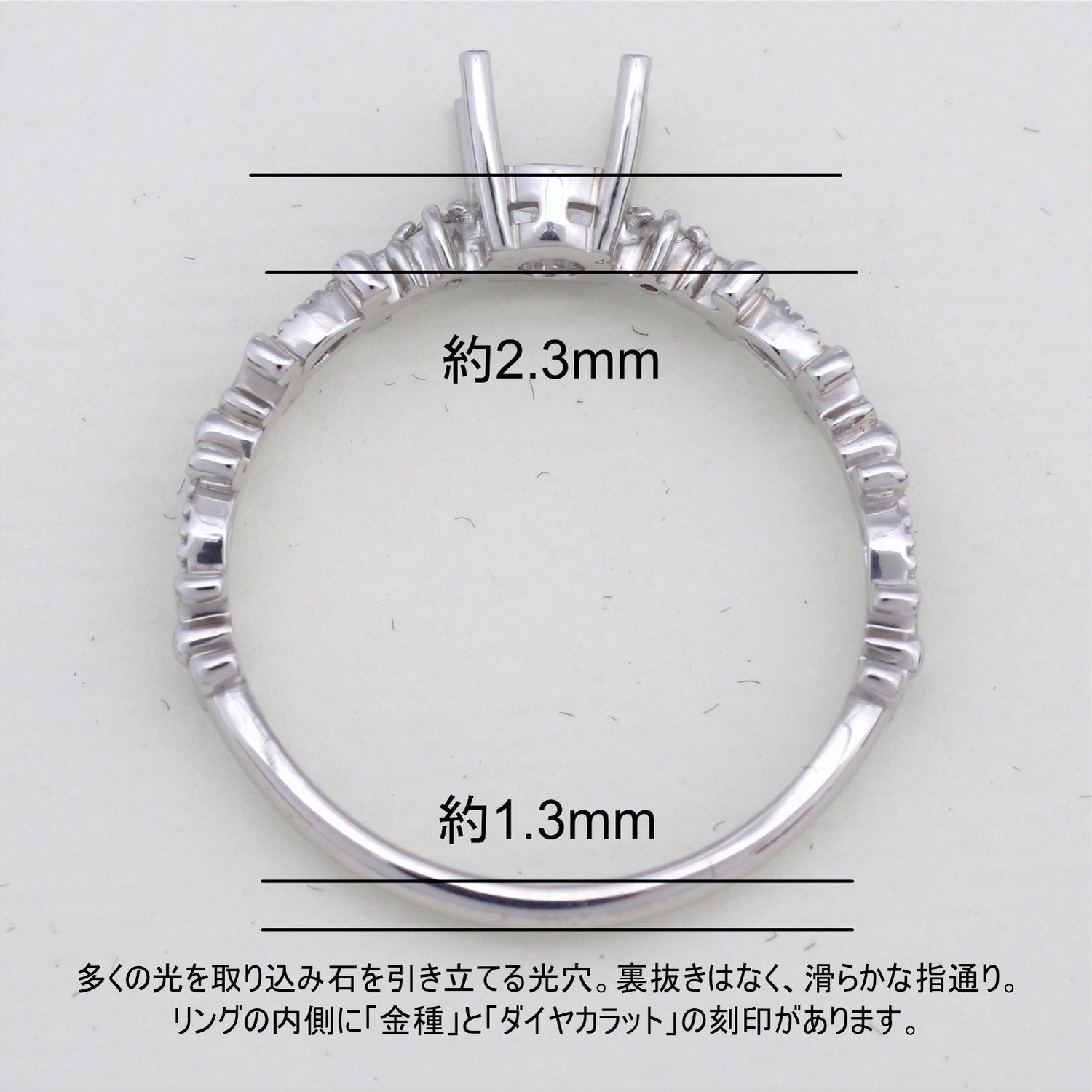 商品に金属名を打刻。またダイヤモンド付き商品にはカラット数も打刻してあります。