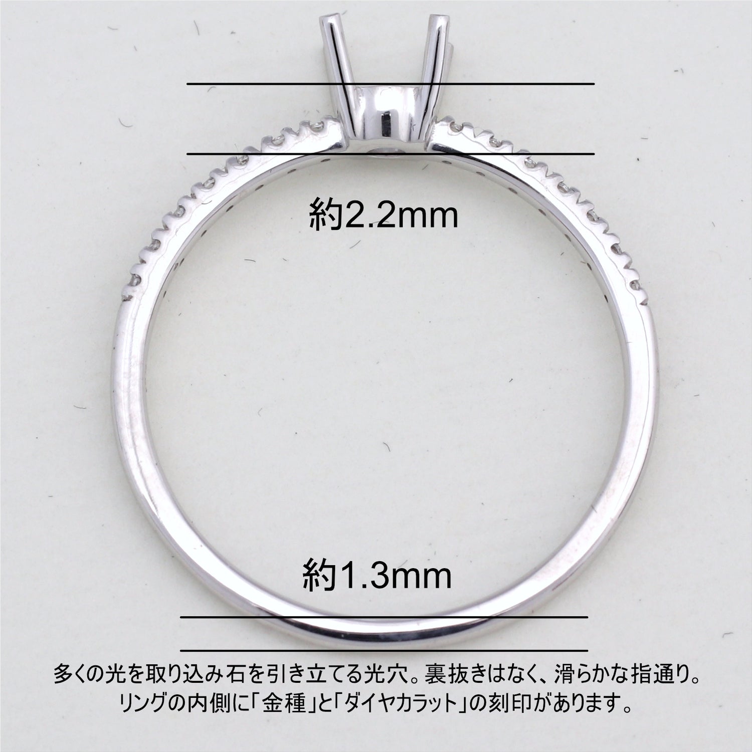 商品に金属名を打刻。またダイヤモンド付き商品にはカラット数も打刻してあります。