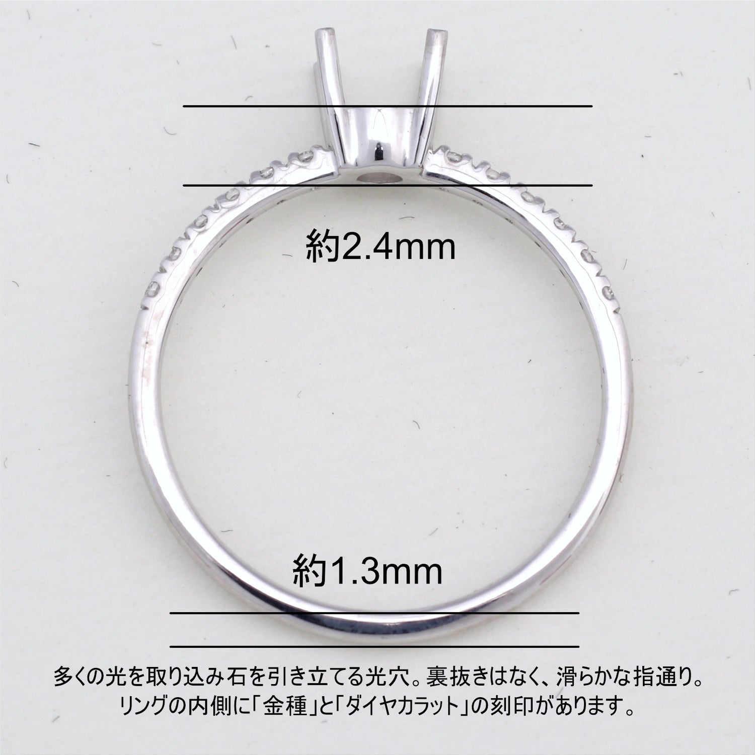 商品に金属名を打刻。またダイヤモンド付き商品にはカラット数も打刻してあります。