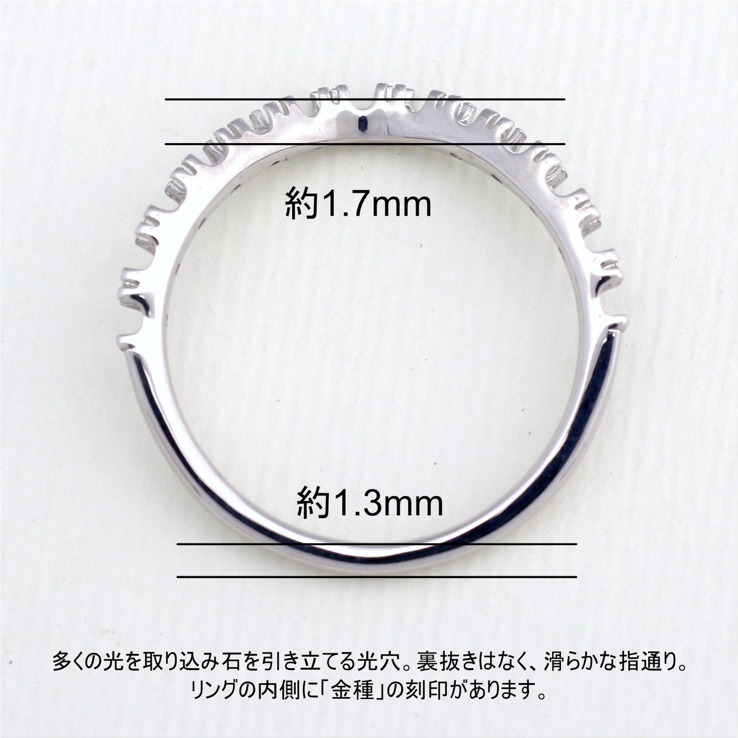 商品に金属名を打刻。またダイヤモンド付き商品にはカラット数も打刻してあります。
