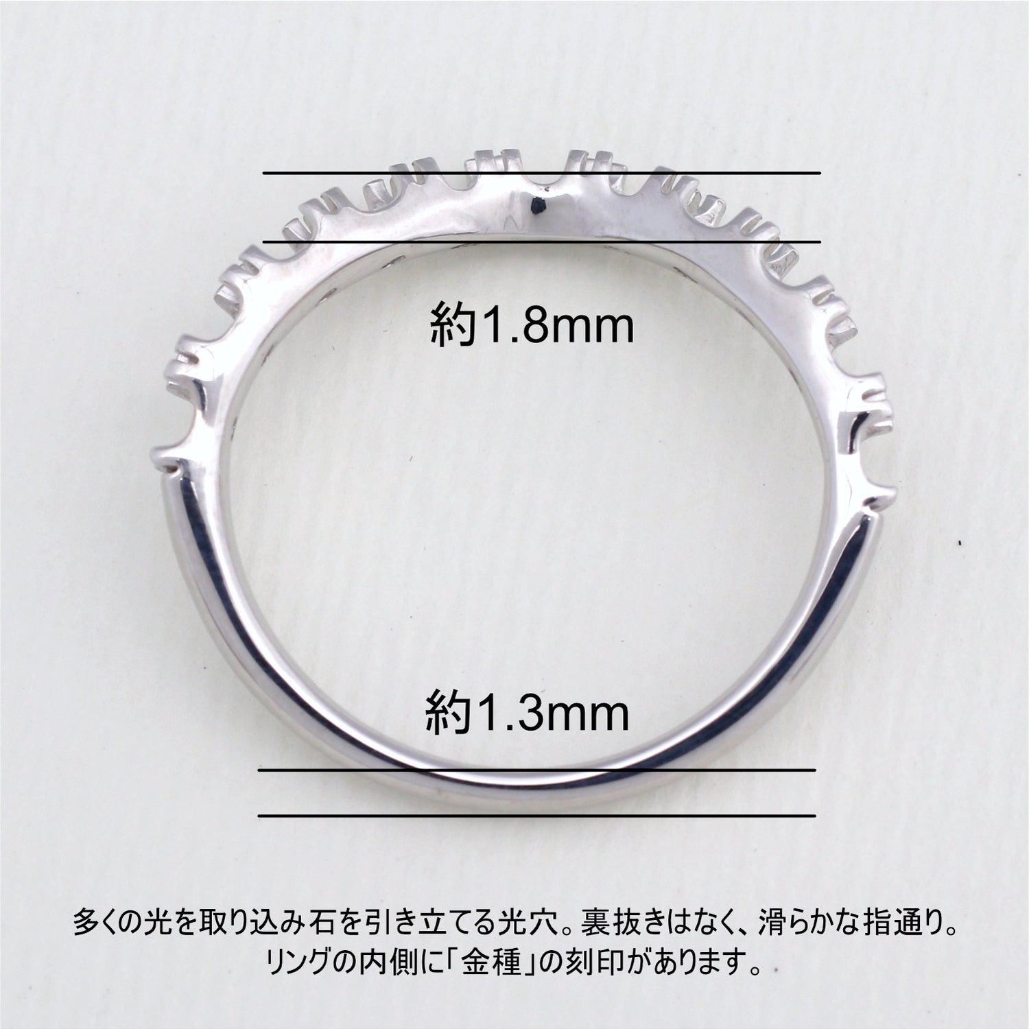 商品に金属名を打刻。またダイヤモンド付き商品にはカラット数も打刻してあります。